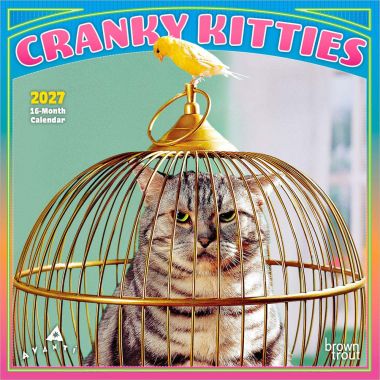 Avanti Cranky Kitties OFFICIAL | 2027 7 x 14 Inch (Hanging) Monthly Mini Wall Calendar