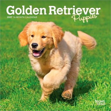 Golden Retriever Puppies | 2027 7 x 14 Inch (Hanging) Monthly Mini Wall Calendar