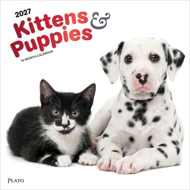Kittens & Puppies | 2027 12 x 24 Inch (Hanging) Monthly Square Wall Calendar | Foil Stamped Cover