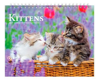 Kittens | 2027 7.5 x 6 Inch Monthly Double-View Easel Desk Calendar