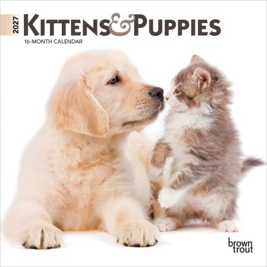 Kittens & Puppies | 2027 12 x 24 Inch (Hanging) Monthly Square Wall Calendar | Foil Stamped Cover | Plastic-Free