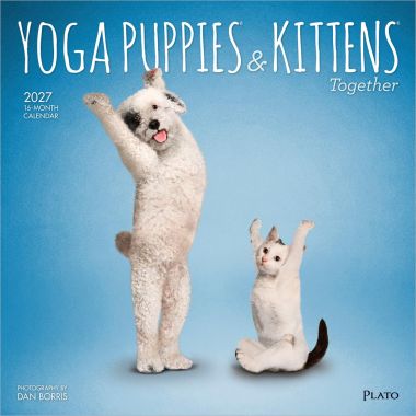 Yoga Puppies & Kittens Together OFFICIAL | 2027 12 x 24 Inch (Hanging) Monthly Square Wall Calendar