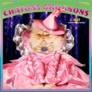 Avanti Chatons Grognons OFFICIEL | 2027 12 x 24 Inch (Hanging) Monthly Square Wall Calendar | French Language