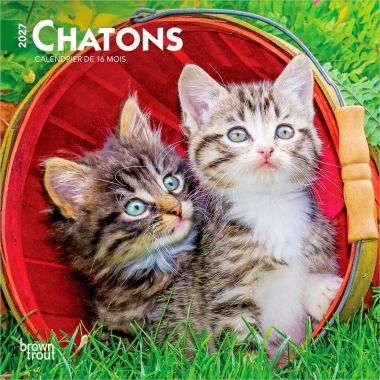 Chatons | 2027 12 x 24 Inch (Hanging) Monthly Square Wall Calendar | French Language