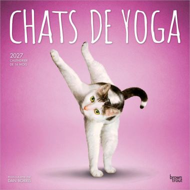 Chats de Yoga OFFICIEL | 2027 12 x 24 Inch (Hanging) Monthly Square Wall Calendar | French Language