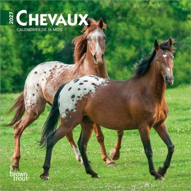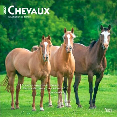 Chevaux | 2027 12 x 24 Inch (Hanging) Monthly Square Wall Calendar | French Language