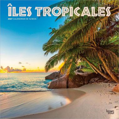 Îles Tropicales | 2027 12 x 24 Inch (Hanging) Monthly Square Wall Calendar | French Language
